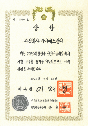 2025 대한민국 안전기술대상 수상 (대통령상)